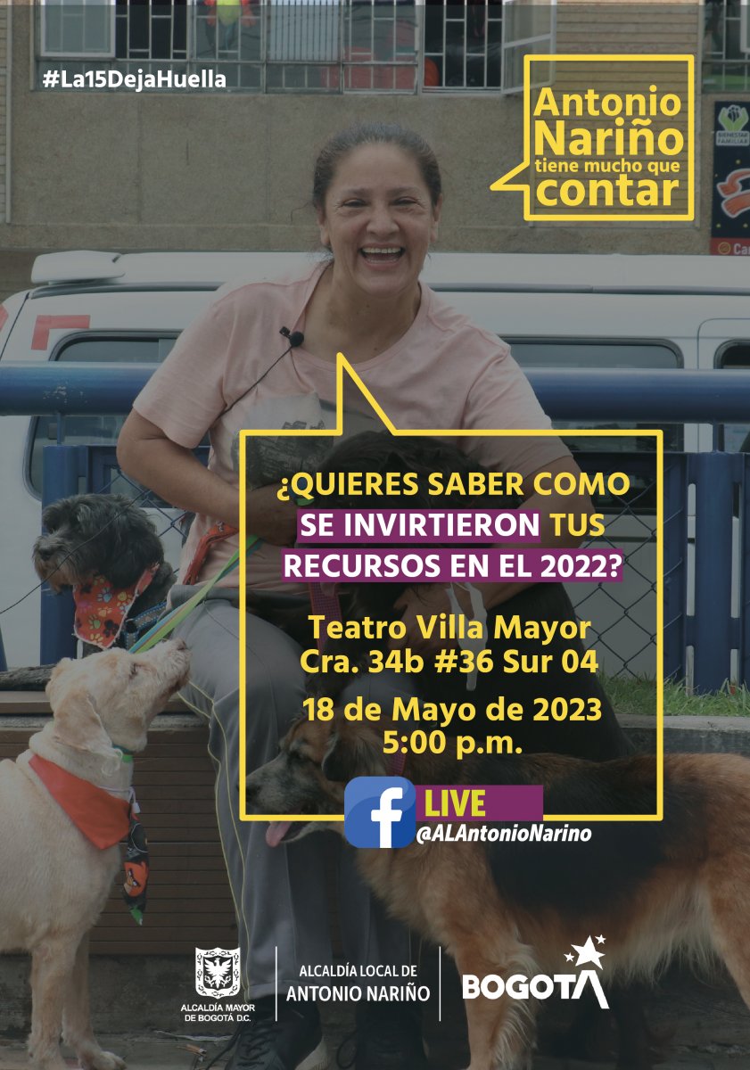 Antonio Nariño tiene mucho que contar y la Alcaldesa Local Mónica Alejandra Díaz Chacón, tiene el gusto de invitarlos/as a ser parte de la Audiencia pública de rendición de cuentas vigencia 2022. Por lo tanto, se ha habilitado un enlace para que realices tu inscripción previa el cual estará habilitado hasta el 16 de mayo de 2023.