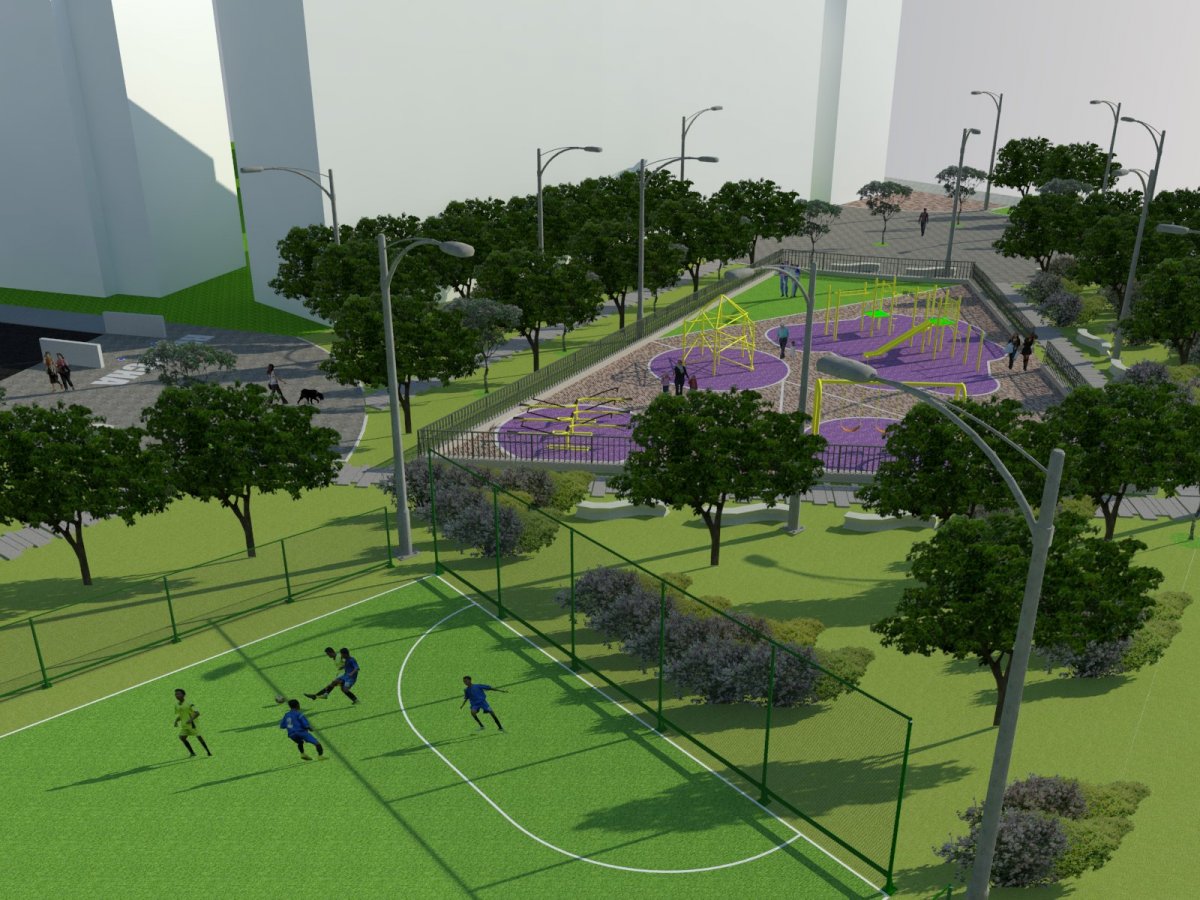 La obra “Parque Lineal Río Fucha” tendrá cancha de fútbol 5, sendero ecológico de 300 metros lineales, tres plazoletas de contemplación y descanso, parque especializado para niños, gimnasio al aire libre, acupuntura urbana, accesos para población en condición de discapacidad.